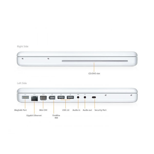 El modelo MacBook de 2,4 GHz integra 2 Go de memoria en estándar. Lo ideal para realizar sin dificultad tus aplicaciones preferidas.